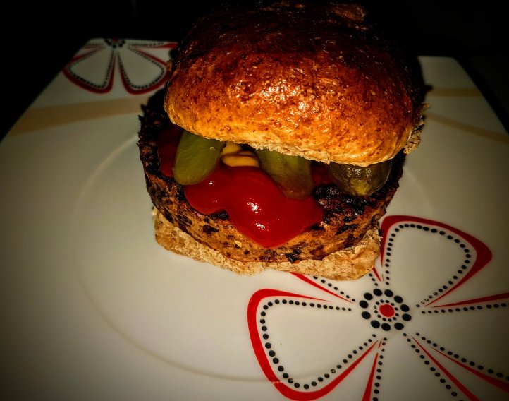 Perfect base to build a burger. I went the simple route of ketchup, mustard and gherkins. I’d eat a bunch more.